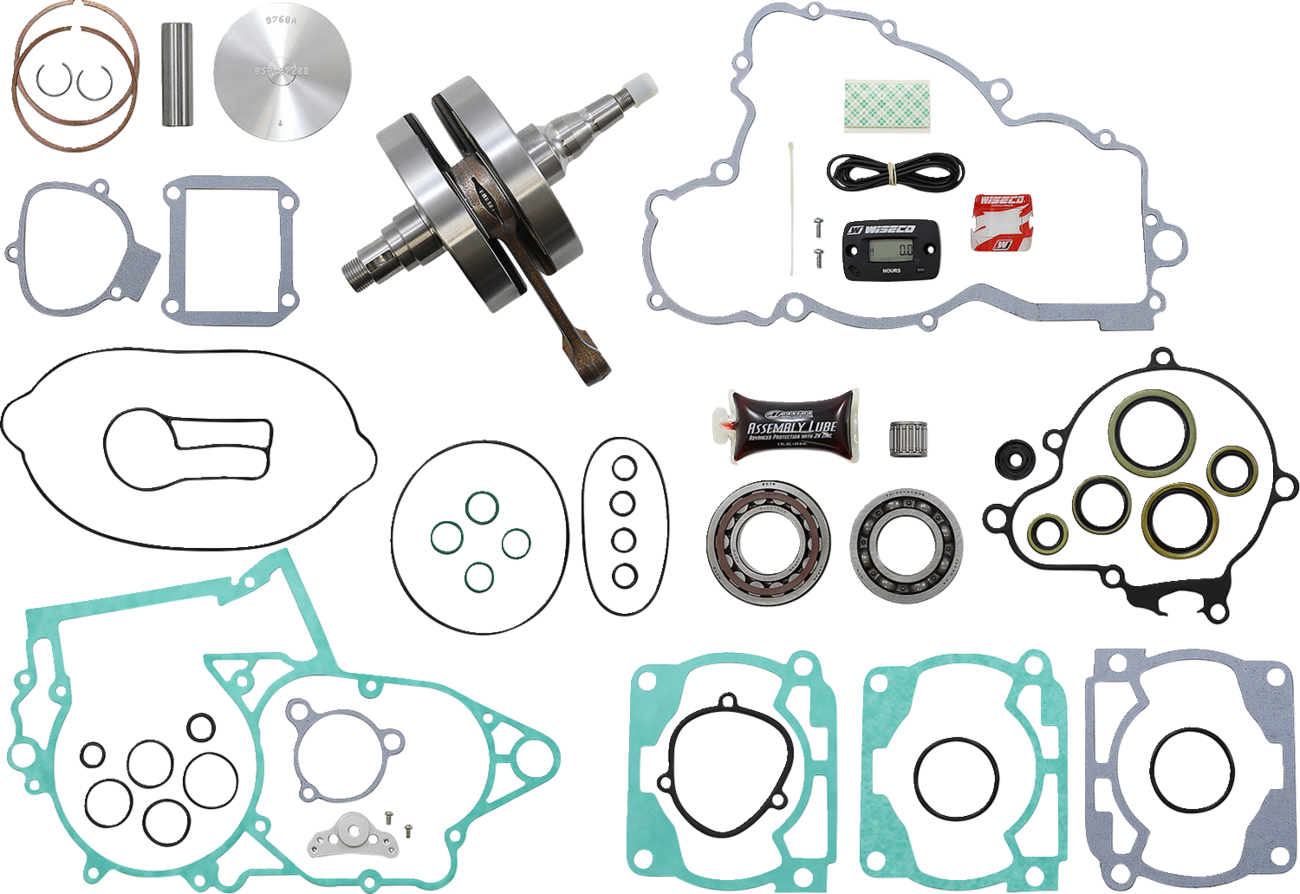 Includes all top and bottom-end components for a complete engine rebuild4-stroke kit includes a premium forged piston kit with stock compression ratio and a high-quality cam chain2-stroke kit includes a Pro-Lite® pistonCrankshaft and rod assembly designed and inspected to assure durabilityKit includes main bearings, seals, gaskets, an hour meter and bracketSpecs