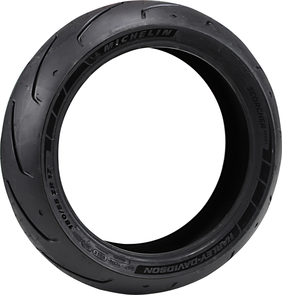 Long lasting performance in wet and dry: Innovative Dual Compound Technology (2CT and 2CT+) with the most advanced compounds ever used in Michelin® Scorcher® tires extends the performance of the Michelin® Scorcher® tire range by providing outstanding levels of wet and dry grip. This technology enables the Michelin® Scorcher® Sport tire to provide wear resistance in the center of the tread with optimized grip on the shouldersThe original equipment tire co-developed and co-branded with Harley-Davidson, is designed to enhance the ride and handling performance of Harley-Davidson's new high performance motorcyclesMaximum handling performance: The co-designed tread pattern and co-branded sidewall with Premium Touch Technology™ compliment the styling of Harley-Davidson® motorcyclesHarley-Davidson® branding on the sidewall(W)-rated for speeds up to 168+ mphTubeless (TL)Blackwall