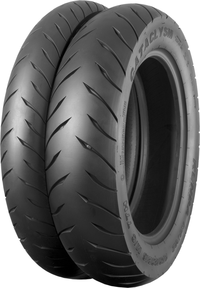 Dual-compound technology for improved mileage in center and added grip on shouldersTread grooving designed to efficiently disperse water while minimizing uneven wearCasing designed to accommodate the largest/heaviest bikes on the marketTubeless construction for touring and cruiser bikesH-rated for speeds up to 130 mphLow-profile sport tire designTubeless (TL)Blackwall