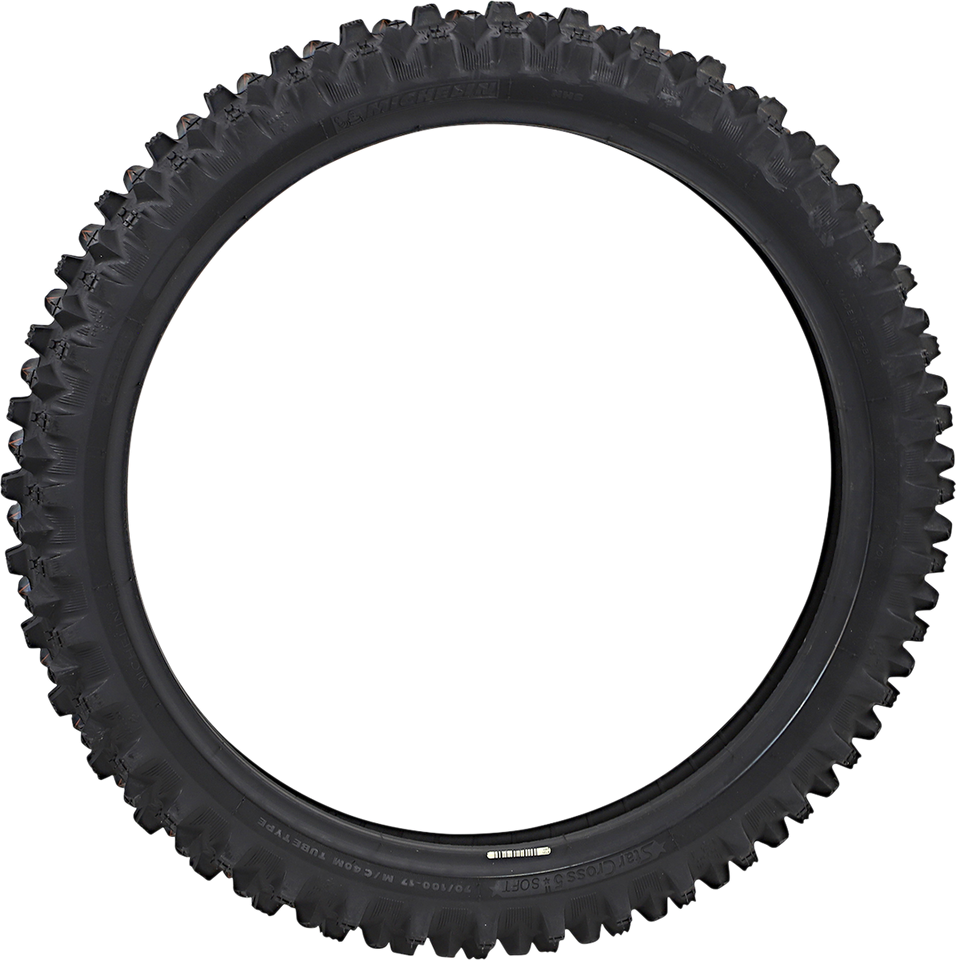 Maximum traction in soft conditions - Mud-Phobic Bars maximize cleaning capability to prevent mud and dirt from building up between the knobs, which ensures maximum traction and accelerationMaximized feedback at varying lean angles - The intermediate tread blocks on the Soft tire are positioned in staggered rows to maximize traction and feedback throughout varying lean anglesHigh performance in softer terrain - Specifically designed to provide a high level of performance on a wider range of terrain from firm soil, grass, mud, and even sandSpecifically designed to provide a high level of performance on a wider range of terrain from firm soil, grass, mud, and even sandTube type (TT)Blackwall