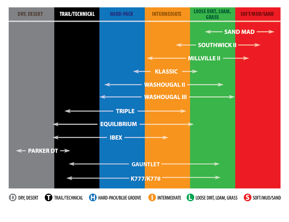 Tread pattern allows for maximum efficiency in a wide variety of terrains and conditionsTriangular shaped knobs to reduce knob flex on hard base areasDesigned to meet the demands of intermediate terrainsCasing structure includes reinforced sidewallsTube type (TT)