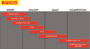 Innovative tread pattern combines the typical off-road style of the Pirelli Scorpion™ range with the experience directly derived from the Angel GT (Pirelli's top sport touring product)Incredible versatility ensures peak performance on long, straight journeys or twisty roads with the most adverse weather conditionsIncreased mileage, improved wet grip with an incredible performance consistency throughout its entire life cycleCentral compound developed for higher mileage and improved behavior in wet conditionsLarger center compound stripe to guarantee enhanced cornering performancePeak performance of enduro and sport touring blended into one productSide compound for optimized balance between dry and wet performanceHigh performance for heavy, fully-loaded bikesTubeless (TL)Blackwall