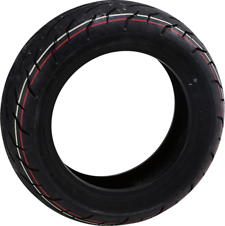 Scooter tire with a sport-inspired design for the urban rider and commuter with small to medium displacement (less than or equal to 400cc) scooters. Zip around your city with confidence in both wet and dry conditions.