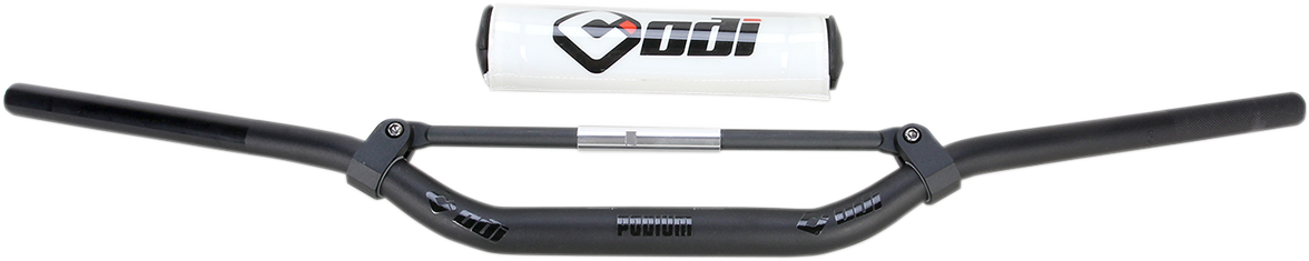 Utilizing our Controlled Flex Technology, the CFT crossbar allows the handlebar to naturally flex at a controlled rate, providing reduced vibration and rider fatigueControlled Flex Technology crossbar with built-in elastomer for lower vibrationConstructed of high-strength seamless double-butted 2014-T6 alloyEach handlebar shot-peened and hard anodized for improved durabilityOversized 1-1/8” clamp diameter improves bar/clamp grip (requires “oversized” bar mounts)Ti-colored clamps, crossbar connector and matching ODI graphicsLightly knurled left slide helps grip bar adhesion, without interfering with Lock-On Grips