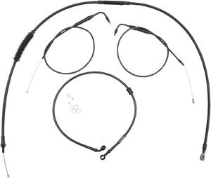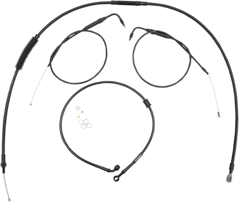 • Kits include shortened single-disc black braided steel brake line, shortened clutch cable, shortened throttle cables and all necessary wiring