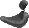 Cut narrow at the nose so the rider can easily plant their feet on the groundSits the rider slightly lower but at a similar reach to controls compared to stockHigh-quality expanded vinyl cover combines the appearance of leather with the durability to withstand the elementsMatching passenger seat offers a spacious 10” width for passengers and is 2.5” wider than stock passenger areaSpecs