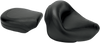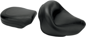 Deeply contoured front bucket; passenger seat angles forward to support the rider's backPremium-quality, expanded vinyl coverBuilt-in steel support wings in the passenger seatVintage has no studs or conchos for a clean, smooth lookMade in the U.S.A.Specs