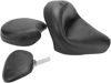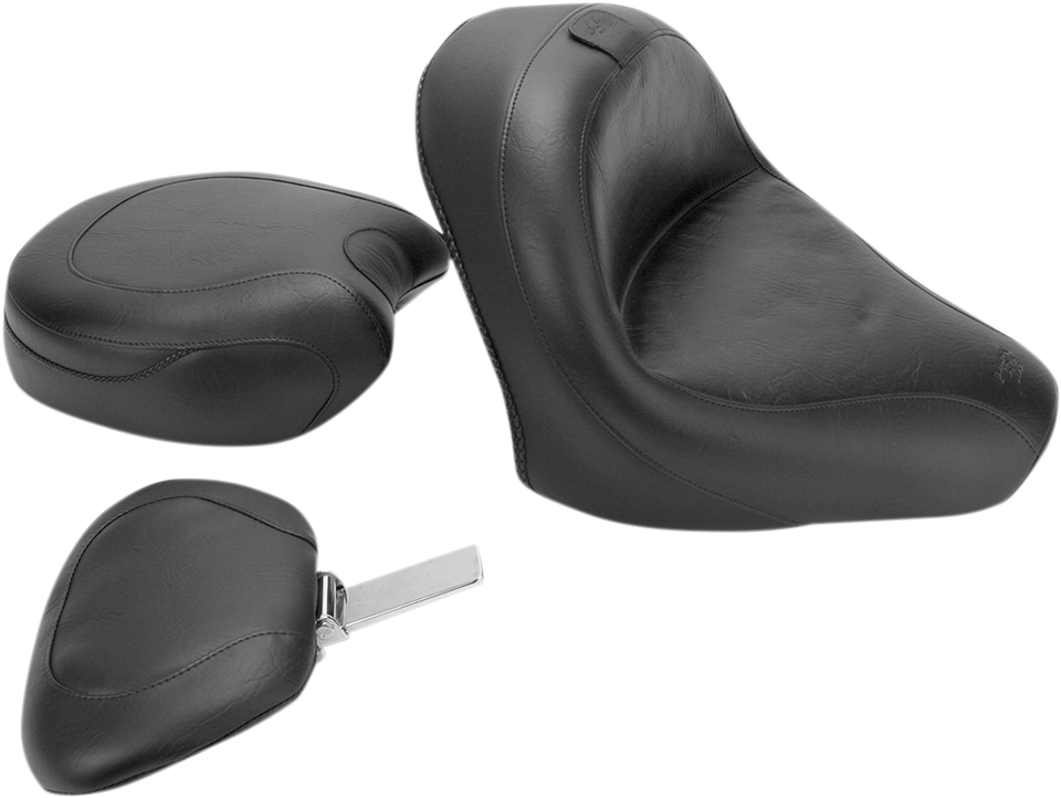 Deeply contoured front bucket; passenger seat angles forward to support the rider's backPremium-quality, expanded vinyl coverBuilt-in steel support wings in the passenger seatVintage has no studs or conchos for a clean, smooth lookMade in the U.S.A.Specs