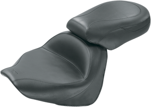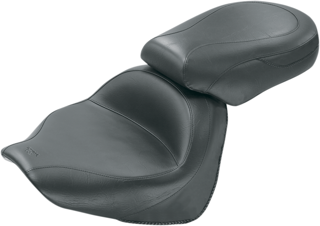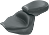 Deeply contoured front bucket; passenger seat angles forward to support the rider's backPremium-quality, expanded vinyl coverBuilt-in steel support wings in the passenger seatVintage has no studs or conchos for a clean, smooth lookMade in the U.S.A.Specs