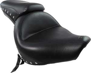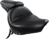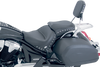 Deeply contoured front bucket; passenger seat angles forward to support the rider's backPremium-quality expanded vinyl coverBuilt-in steel support wings in the passenger seatBackrest folds completely forward for ease of getting on motorcycleRounded thumb screw adjusts backrest forward and back up to 2" while you are seatedMade in the U.S.A.Specs