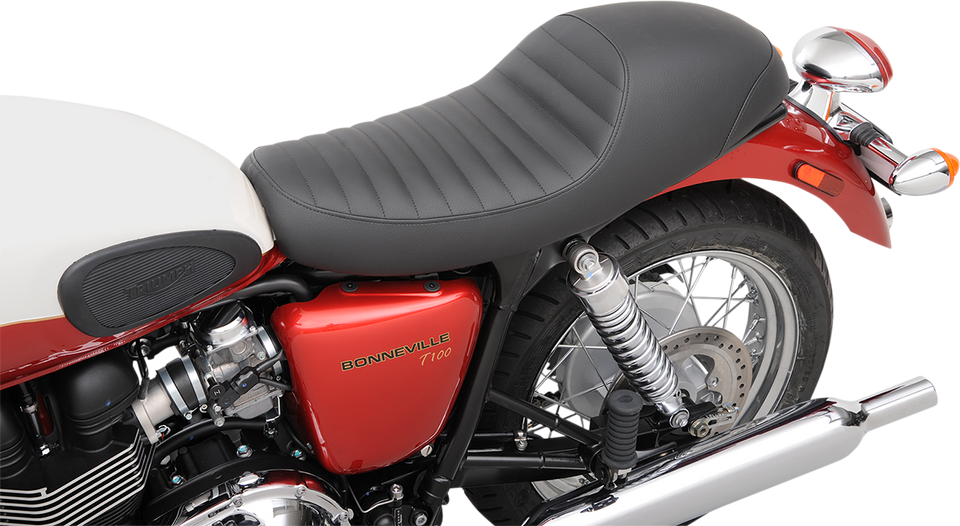 Saddlemen’s unique take on the classic café racing seatMarine-grade, element resistant covers are durable, yet supple, so you can be sure your seat lasts and lastsSimple bolt-on installation – swap a couple of brackets over - nothing else to buy or modifySeating area is shaped to be comfortable making sure you can ride in style all-day-longProgressive density foam with a GEL top layer supports the rider unlike the rock-hard seats offered by other buildersSeat and rear hump shape carefully sculpted to complement the motorcycles’ lines and fender shapesMade in the U.S.A.Specs