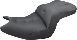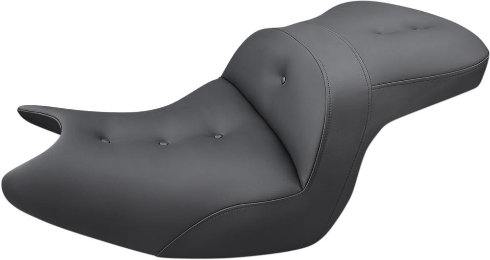 Refined split-cushion design separates the seating surface from the lumbar support to reduce tailbone/back pressure for maximum long-range comfortSeat features a combination of progressive density foam and SaddleGel™ inserts for superior driver and passenger comfortPillowed soft upholstery cover backed by a compliant foam layer under the cover to provide incredible comfort and styleClassic styled button-tufted coverAccommodates Saddlemen or Harley-Davidson® backrests (sold separately)Made in the U.S.A.Specs