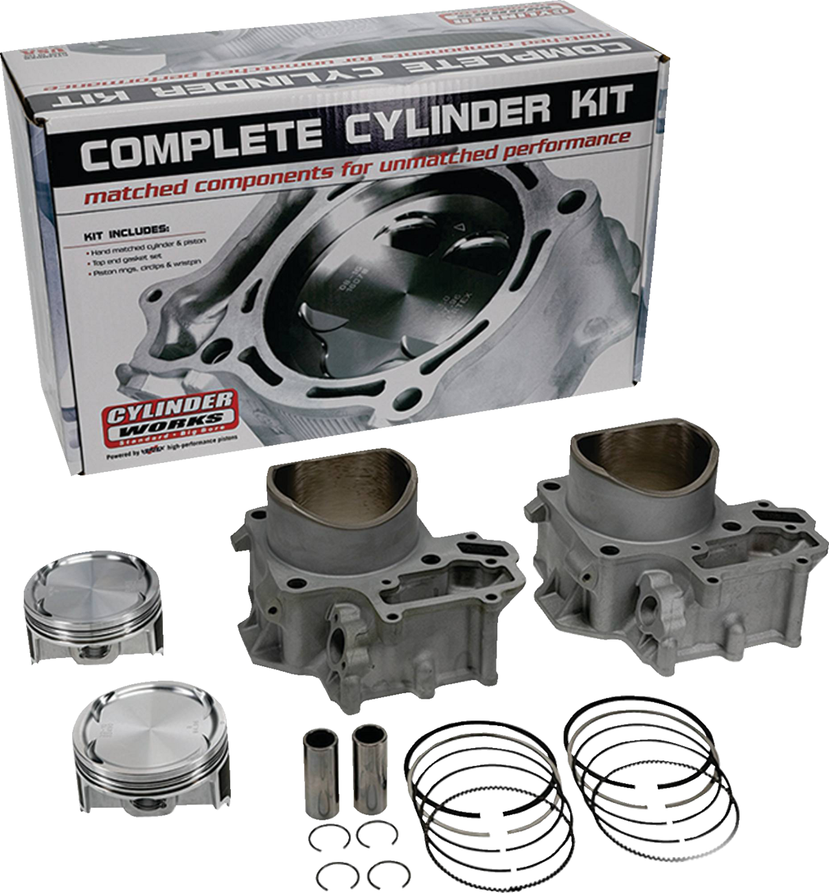 Ready-to-install, direct bolt-on cylinders require no re-plating and look virtually identical to the OEM cylindersCylinder kit comes with matched Vertex pistons to ensure longevity, performance and reduced engine noiseKit includes cylinder, piston, rings, pins, clips and top end gasket kitNickel silicon carbide-plated for long lifeMade in the USASpecs