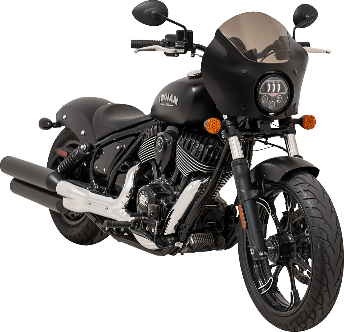 Gauntlet Fairing is a unitized quarter fairing with a matte black finish insideClass A gloss black finish outsideSmoked windscreenSpecs