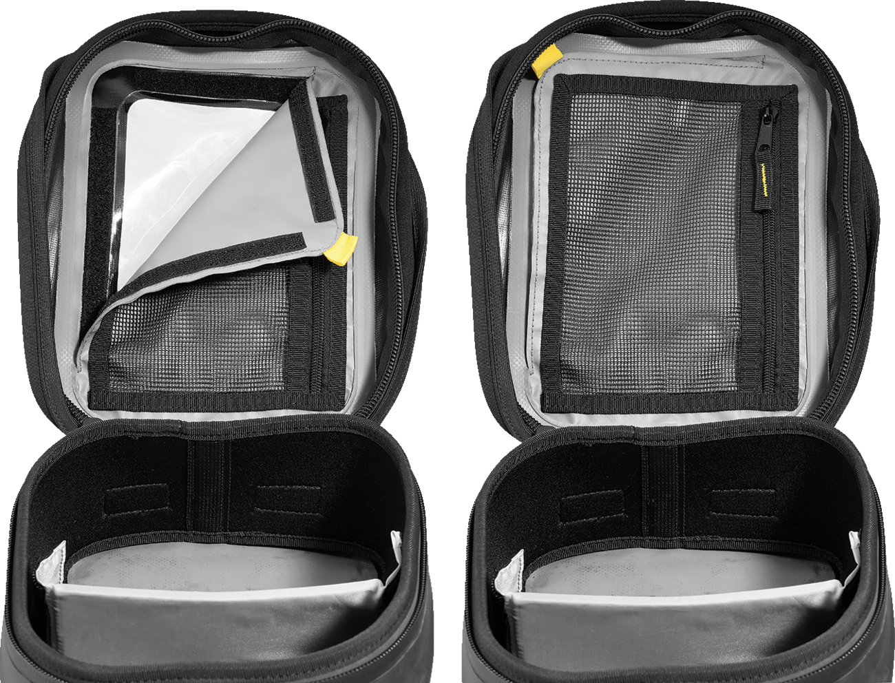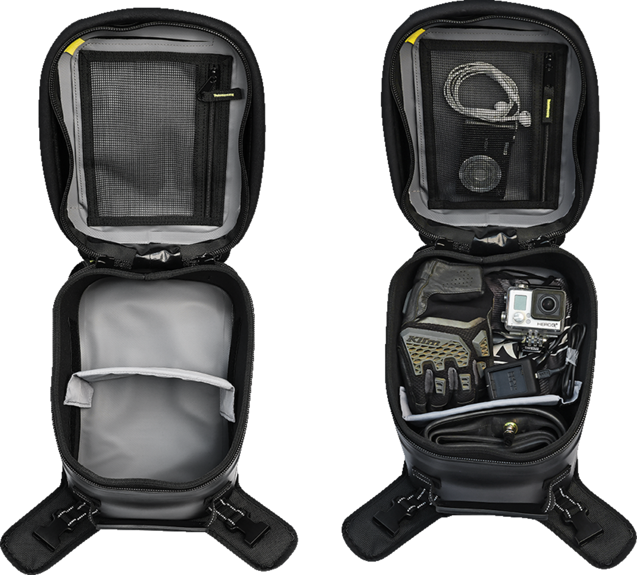 UltraMax® fabric for maximum UV protectionUV-coated outer material100% waterproof PVC tarpaulin with electronically welded seamsQuick release strap system for easy attachment and refuelingProtective base material prevents slipping or markingAdjustable divider to help organize your gearWaterproof zipper flap protects from dust and dirtClear touchscreen device-friendly top pocketRubberized carry handle for easy transportMain compartment has elastic loop in the base to help secure your belongingsStraps in base to help secure your belongingsBag maintains shape and has reflective pipingSmall mesh pocket under lid