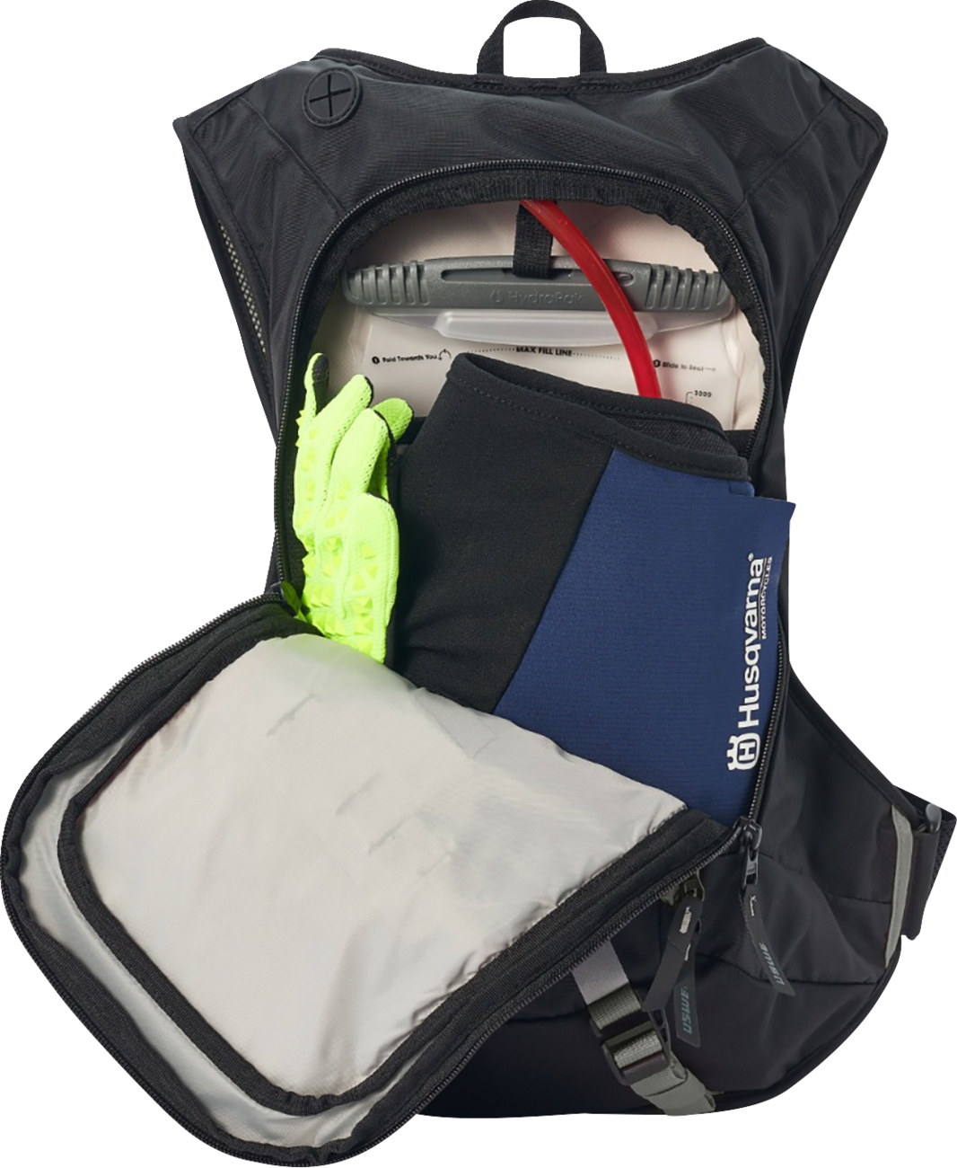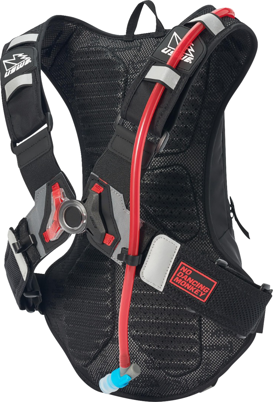 High-end hydration pack for enduro/off-road motorcycle racing and adventure, with the perfect balanced fit for any individual riderBounce free No Dancing Monkey™ (NDM) 1.2 harness system that makes the pack stay put on your back even in the most gnarly terrainThe unique elastic harness system allows tight fit but gives that extra freedom to breathe and moveFeaturing NDM Buckle: a technical buckle for a more secure closure and a better fit3.0L / 100oz Elite Hydration Bladder included12L of storage to keep the essentials for a day of crazy off-road ridingCan carry an extra jacket or equipment on the two external attachment strapsThe shoulder straps and back panel are well ventilated, to improve airflow and to reduce the weightWater-resistant phone pocketEquipped with a 3.0L / 100oz Elite hydration bladder with a slider opening for easy cleaning/drying and to make it possible to put ice inside the bladder during hot conditionsThe bladder is also equipped with a smooth Plug-n-Play tube coupling for extra secure and easy handlingComes with two tube clips for secure attachment of the drink tube and quick access when riding4 point suspension allows freedom to breathe and moveMulti-size dual adjustment loops and adjustable padded hook-and-loop straps