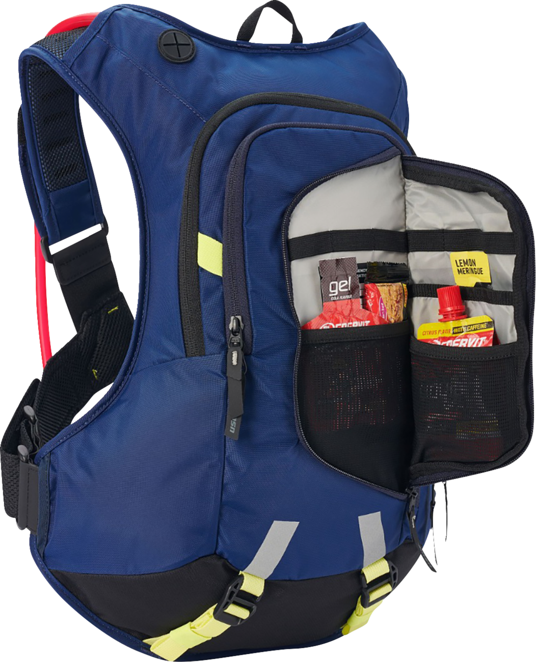 High-end hydration pack for enduro/off-road motorcycle racing and adventure, with the perfect balanced fit for any individual riderBounce free No Dancing Monkey™ (NDM) 1.2 harness system that makes the pack stay put on your back even in the most gnarly terrainThe unique elastic harness system allows tight fit but gives that extra freedom to breathe and moveFeaturing NDM Buckle: a technical buckle for a more secure closure and a better fit3.0L / 100oz Elite Hydration Bladder included12L of storage to keep the essentials for a day of crazy off-road ridingCan carry an extra jacket or equipment on the two external attachment strapsThe shoulder straps and back panel are well ventilated, to improve airflow and to reduce the weightWater-resistant phone pocketEquipped with a 3.0L / 100oz Elite hydration bladder with a slider opening for easy cleaning/drying and to make it possible to put ice inside the bladder during hot conditionsThe bladder is also equipped with a smooth Plug-n-Play tube coupling for extra secure and easy handlingComes with two tube clips for secure attachment of the drink tube and quick access when riding4 point suspension allows freedom to breathe and moveMulti-size dual adjustment loops and adjustable padded hook-and-loop straps