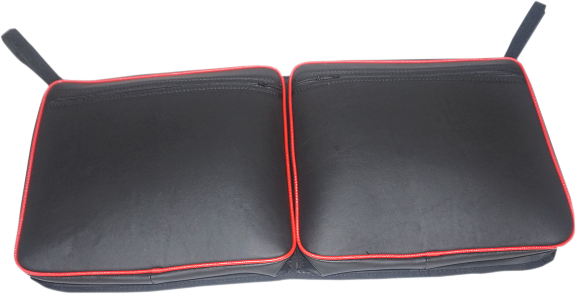 Mounts behind driver and passenger seats with hook-and-loop strapsTwo zippered compartmentsMarine-grade vinyl resists elementsDurable backing adds strengthMade in USASpecs