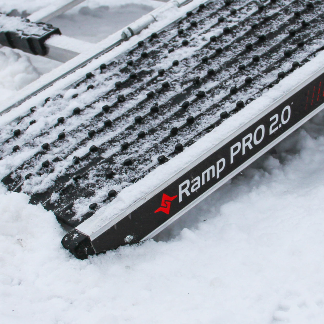 Safe and effective loading solution for most snowmobiles, ATVs/?UTVs, snowbikes, dirt bikes, motorcycles, and golf cartsIntegrated 11.5” LowPro Grip Glides™ increase the versatility of the ramp and provide a safe path when entering and exiting the vehicle or trailerLowPro Grip Glides accommodate snowmobile ski stances down to 30” Includes Caliber’s Retrax strap to easily secure ramp to the vehicleRamp Pro Ramp Grips are available for studded tracks, part # 3902-0180 (requires two sets, sold separately)Has additional Retrax accessory strap anchor points to allow users to secure the ramp’s outer portions when used to load full-size UTVsRemovable center section with inverted hinges allow users to condense the ramp for smaller vehicles