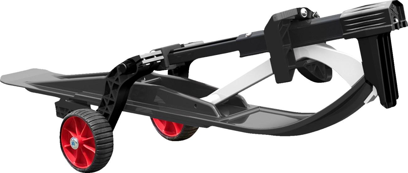 Updated material provides 2x increase in strength, durability, and responsivenessInnovative design provides fast engagement and disengagementUniversal modular design works with almost all snowmobilesHelps protect floors and surfaces by eliminating contactOver molded wheels for grip and easy steeringLift and protect carbide from excessive wearIncludes hardware, assembly requiredSafety pin included for extra securitySpring loaded for quick attachmentProvides mobility for snowmobilesMolded bumpers protect spindlesAdjustable hook with rubber seatAnodized aluminum frameMade in the USA