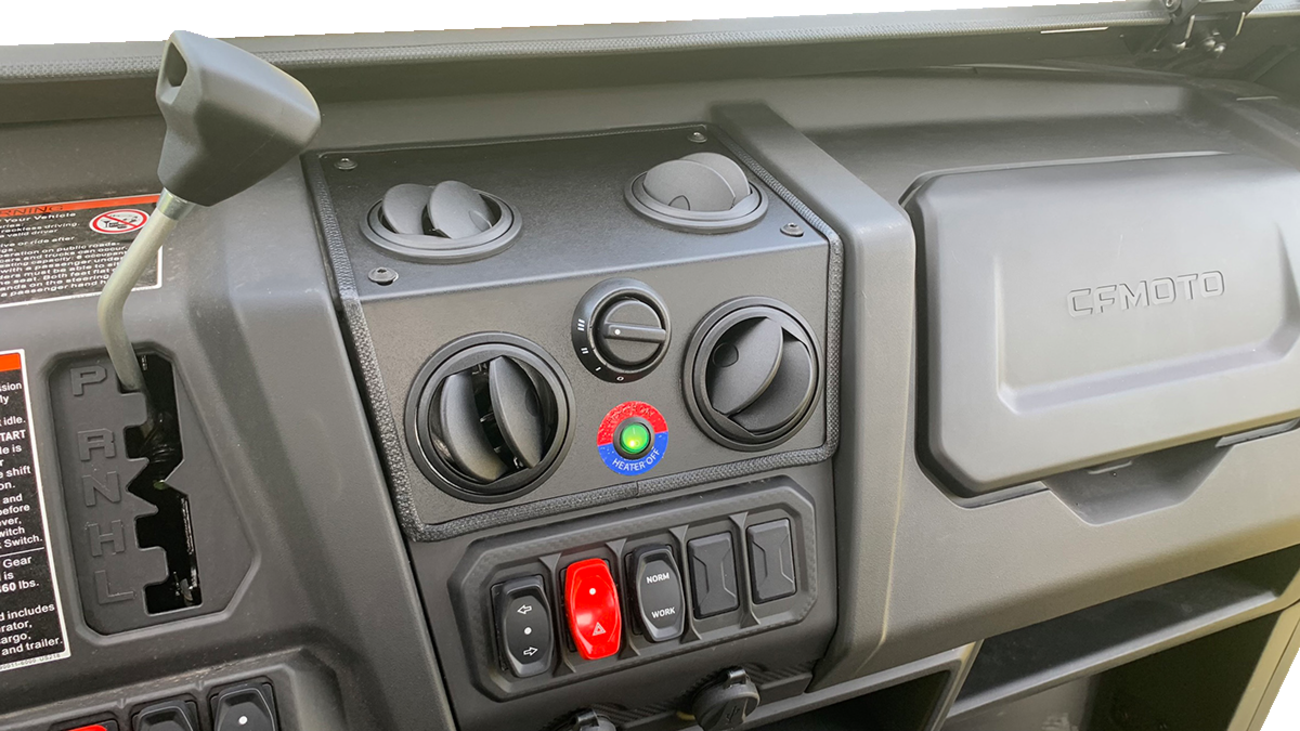 12 V universal cab heater kit for UTVs with 1" (2.54 cm) and 3/4" (1.9 cm) radiator hosesQuick and easy installationTypically installs in about an hourWater operatedSpecs