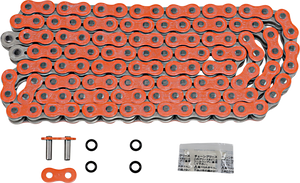 For OEM replacementQuadra-X ring design increases wear life and reduces friction by as much as 40% for maximum engine performanceFeatures lightening holes in side plates and large-diameter pinsIncludes rivet-style master link