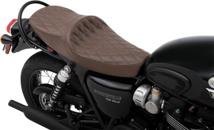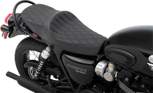 Contoured for maximum comfort for rider and passengerSeat is made narrow up front for better leg clearanceMolded flexible urethane foam interior to maximize comfort3/16" ABS thermoformed seat base for a perfect fit, and fully carpeted bottom with rubber bumpers to protect paintIncludes all mounting hardwareHigh-quality, automotive-grade vinyl coverMade in the U.S.ASpecs