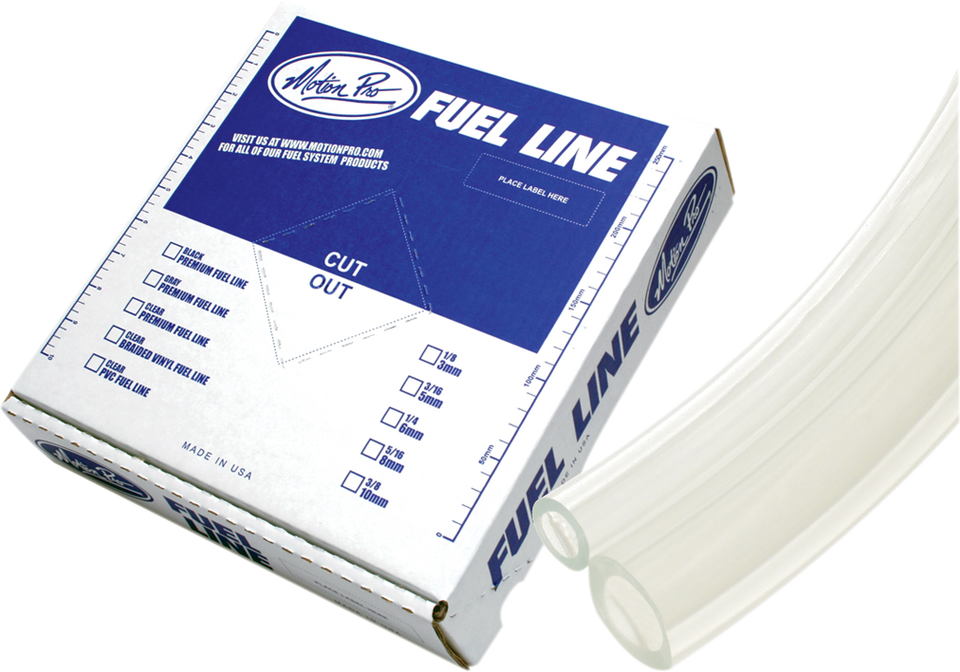 Premium-quality fuel lineStronger and more durable than vinyl fuel lineUse with any type of gasolineResistant to swelling, direct sunlight, hardening and/or crackingFlexible in temperatures from -35F to +165FFuel line stretches easily over fittings or petcocksMade in the U.S.A.