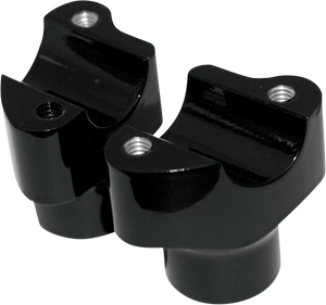 Risers are machined from billet aluminumFit any handlebars that have a 1" diameter in the clamping area, and have 1-1/4" riser diameter to compliment the style of 1-1/4" diameter handlebarsAccepts Buffalo handlebar clamps or OEM-style handlebar clamps with offset mounting holesPullback risers have 1" of pullbackAll risers use 1/2"-13 riser bolts; available separatelyMade in the U.S.A.